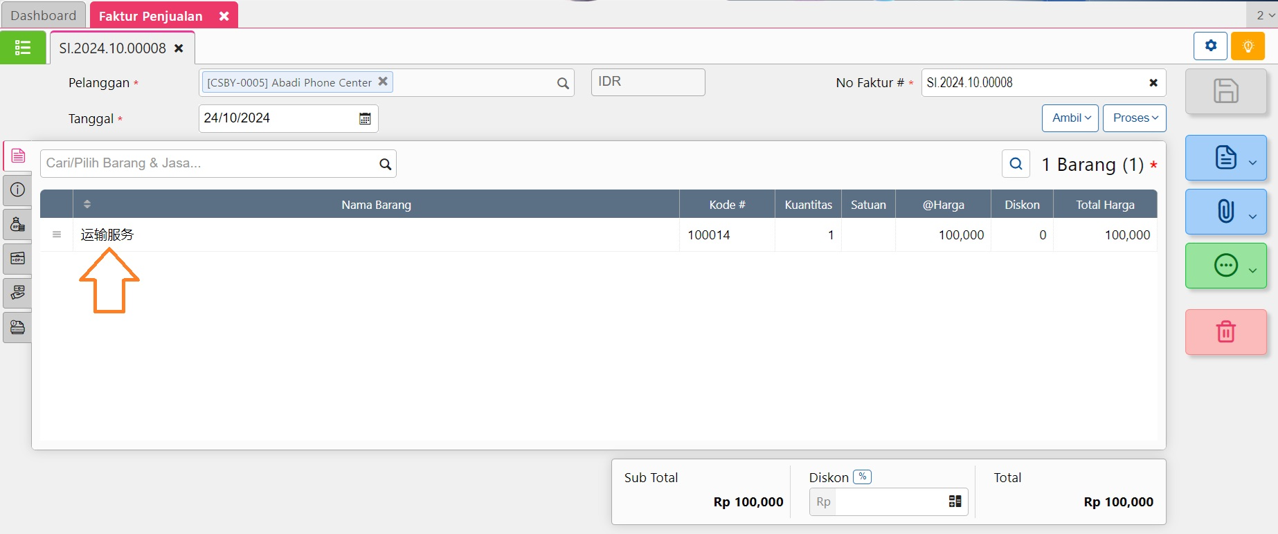 - Pastikan sudah mengisikan keterangan/nama yang ingin ditampilkan dalam bahasa Mandarin, misal Nama Barang, maka isikan Nama Barang tersebut dalam Bahasa Mandari di Accurate Online melalui menu Barang & Jasa.